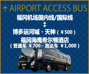 ※从福冈海鹰希尔顿酒店、天神、博多运河城出发,前往福冈机场国际线的线路将乘坐「福冈机场连线巴士」,然后由福冈机场国际线换乘旅游巴士。