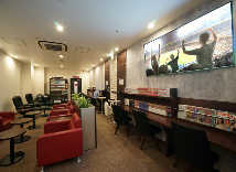 8Fにリラクゼーションスペースをご用意しております。飲食スペースにもなっております。また、漫画・雑誌はもちろん、大画面TVや無料インターネットコーナーもございますので、どうぞごゆっくりおくつろぎくださいませ。奥には喫煙ルームもございますのでタバコをすわれる方はこちらをご利用下さい。