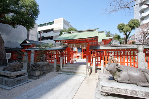 石清水、宇佐などと並ぶ日本三大八幡宮のひとつ。薩摩の島津義久を屈服させた秀吉は、天正15年(1587)筑前博多の筥崎に到着。そこで九州攻めの功績をみとめ黒田官兵衛に豊前国の3分の2を与えた。 |